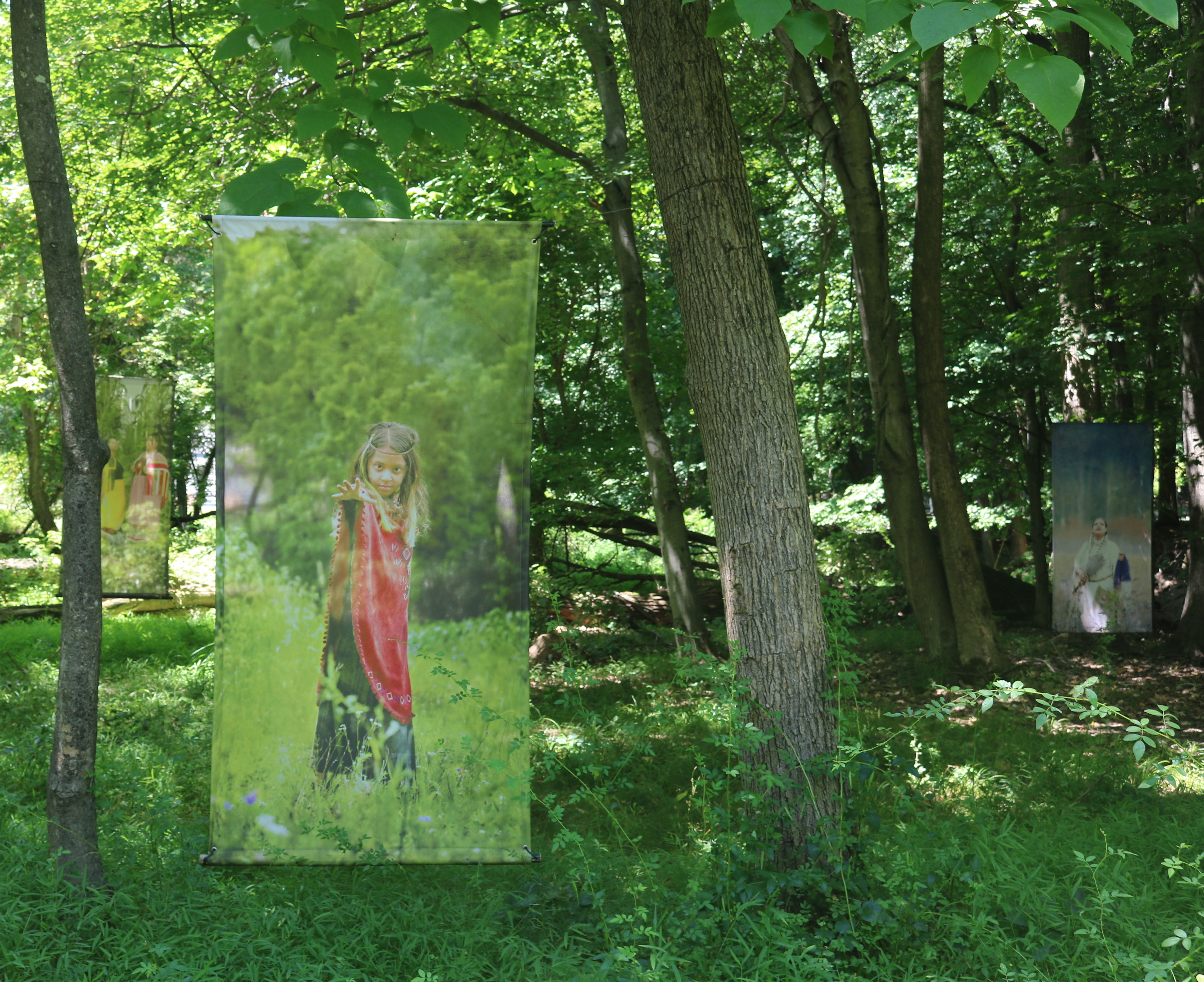 Interesting Observation: Take a moment to observe how nature weaves her way amid - and around - the portraits, making the installation seem fully integrated into nature. The semi-transparent banners allow light and natural ambience to flow through without blocking it.