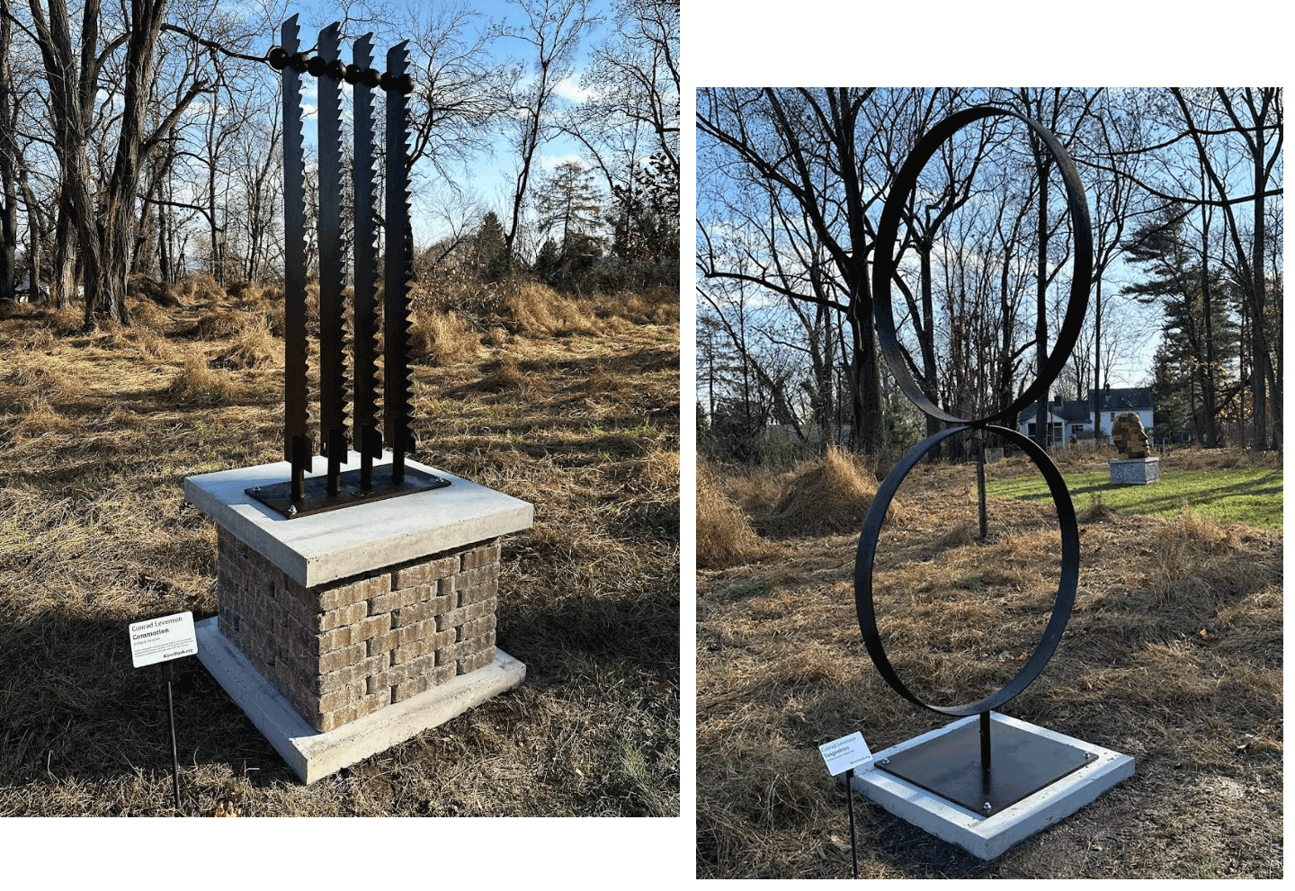 These sculptures are made from repurposed farm equipment, including ice saws once used on the Hudson River.
